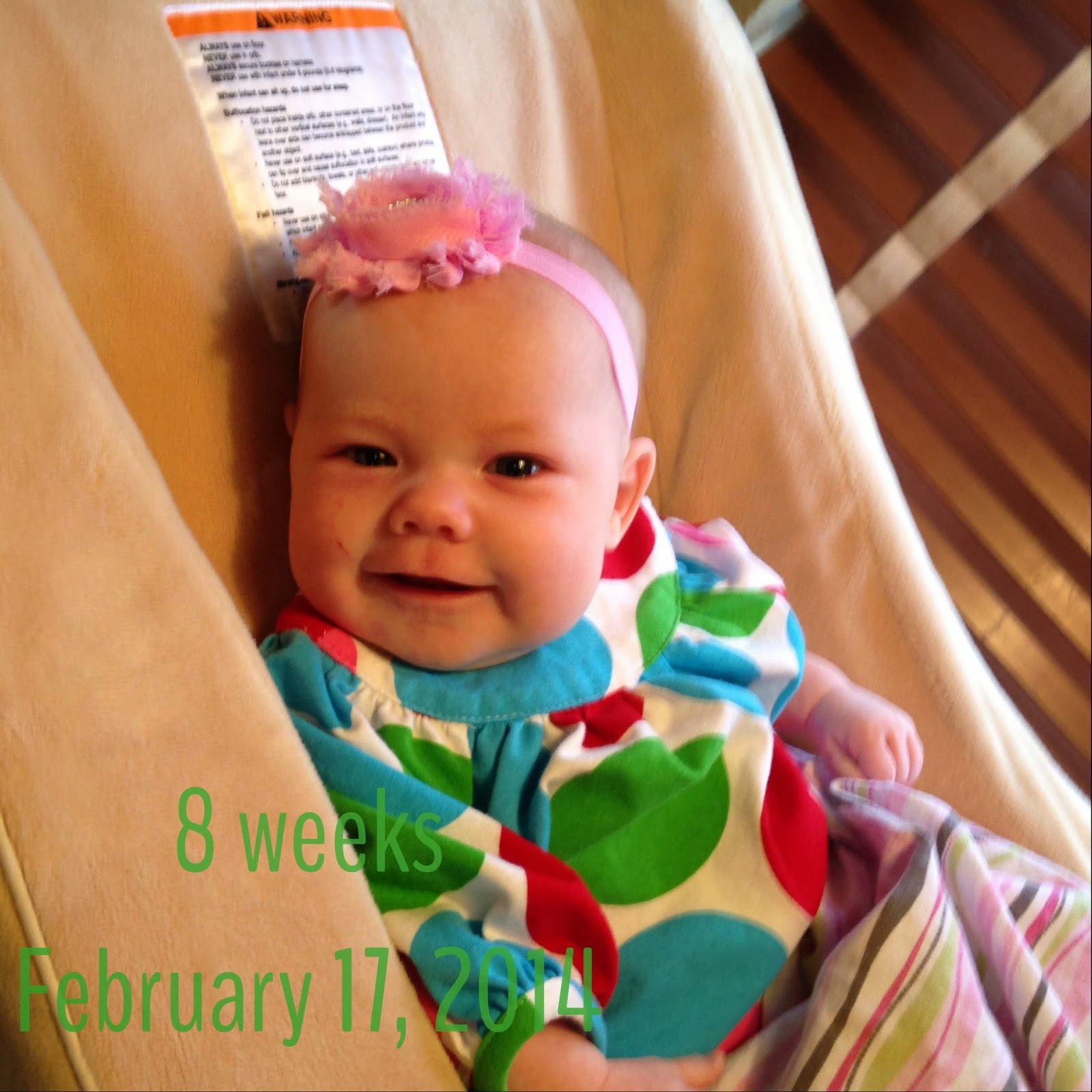 Rose turned 2 months old yesterday and 9 weeks today. Her 2 month well check was today, which was a bit hard on my heart. She took the shots TERRIBLY, and just had an all-around sad time there. (WAY unlike her! She's normally the calmest, happiest baby on earth. I think that is what made it SO hard on me. I choked on tears alllll day.) She is my little light, and seeing her sad was almost more than I could bear.